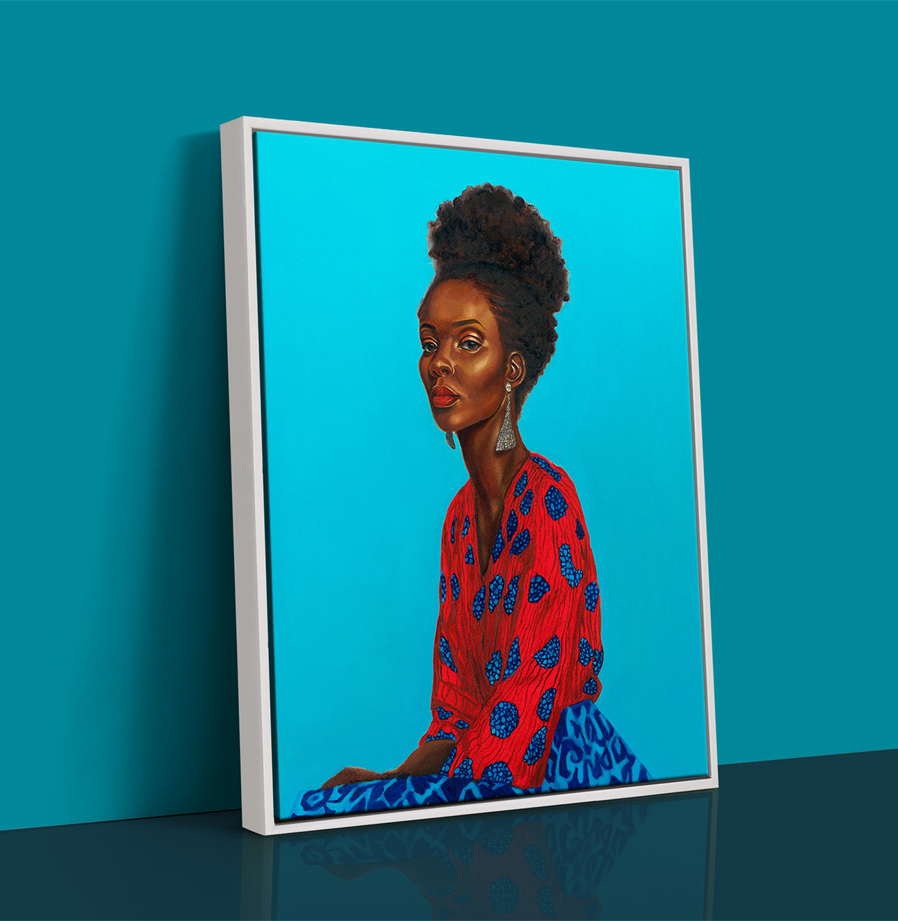 “The Weight of Knowing” captures a quiet kind of strength. The figure sits tall and steady, meeting the viewer with a gaze that holds both softness and certainty. Set against a calm, bright background, her presence feels anchored, confident, and deeply aware.